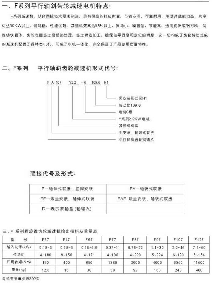 概述特點(diǎn)型號(hào)表示法聯(lián)結(jié)代號(hào)及形式輸出扭矩及重量表
