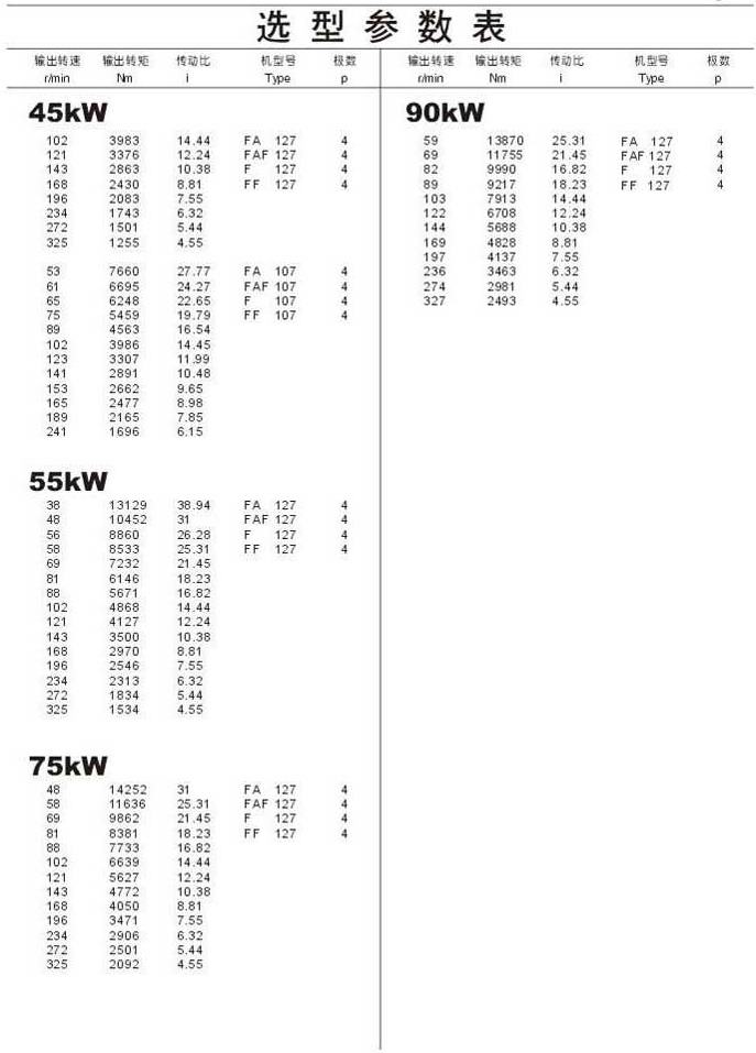 選型參數(shù)表45kW (續(xù)),55kW ,75kW ,90kW 142