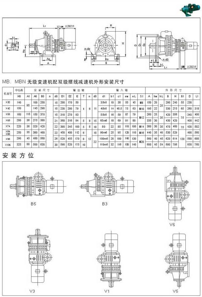 MB.MBN無級變速機(jī)配雙級擺線減速機(jī)外型安裝尺寸安裝方位