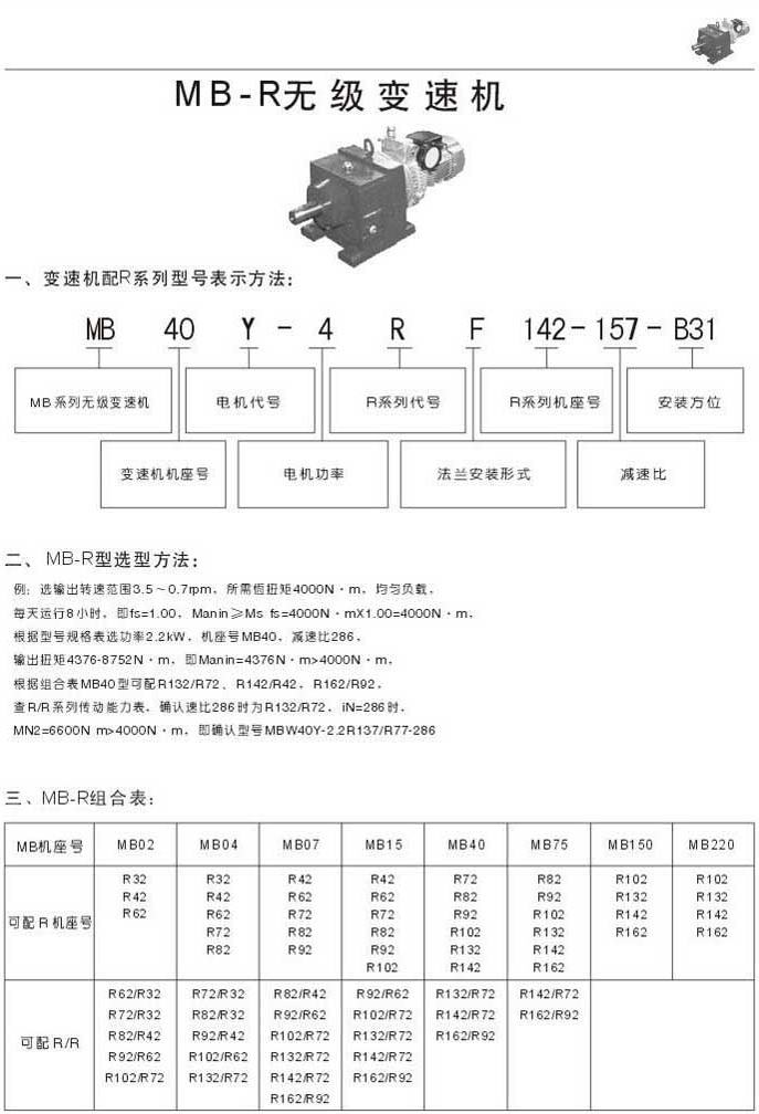 MB-R無級變速機型號表示法選型方法MB-R組合表